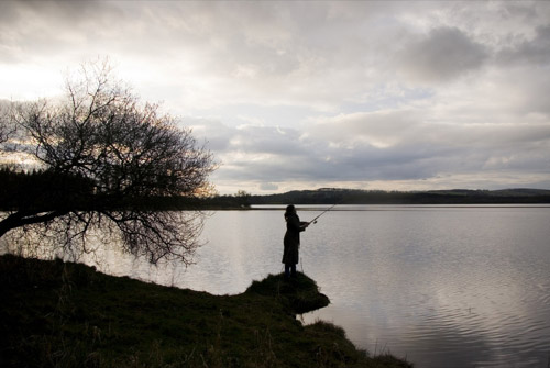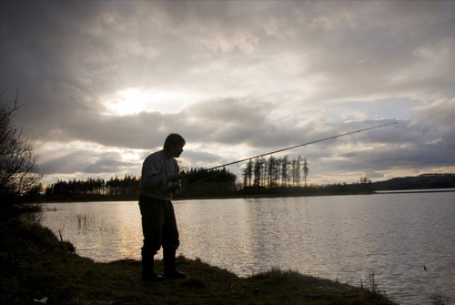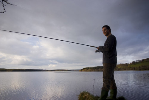 Kilka dni spędziliśmy wędkując w Blessington Lake (inaczej Pollaphuca Reservoir). Po skompletowaniu sprzętu i wykupieniu licencji na Coarse Fishing i Trout Fishing (w sumie 60 euro od osoby za dwie wędki na rok czasu) postawnoiliśmy wykoszystać możliwość połowy w tak niesamowitym jeziorze. W sumie to 20 km kwadratowych wody - ogromny zbiornik wykorzystywany przez ESB (energetyka) do wytwarzania energii elektrycznej. Dodatkowo jest to główny zbiornik wody pitnej dla miasta Dublin. Wokół jeziora roztaczają się niewielkie góry i wzgórza całkowicie pozbawione drzew. Na ich stokach można dostrzec małe białe kropki - owce pasące się spokojnie na ogromnych łąkach. Wokól jeziora jest wiele pól golfowych i ekskluzywnych hoteli.