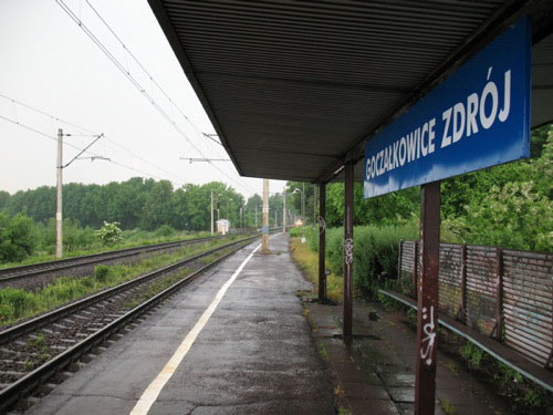 Dzień tak szczególny musieliśmy spędzić z daleka od naszych rodzin. Pogoda nie zapowiadała się zbyt dobrze, ale w weekend... trzeba było się wreszcie uwolnić od czterech ścian. Jako miejsce docelowe wybraliśmy Goczałkowice. Gdy dotarliśmy na dworzec kolejowy już zaczynało kropić, ale niebo nie wyglądało groźnie, więc obyło się bez zniechęcenia. Na miejsce dojechaliśmy dosyć szybko. Gdy wysiedliśmy z pociągu lało jak z cebra. Nie dało się nosa za zadaszenie wystawić. Przeczekaliśmy kilka minut na stacji, której dworcem raczej nazwać się nie da. Dworzec tam jednak jakiś był, bo budynek nadal stoi - piękny, ale zaniedbany. Gdy deszcz zelżał, udaliśmy się do centrum (o ile tak to nazwać można) Goczałkowic Zdrój. Oczywiście piękne miejsce, ale deszcz znów zaczął szaleć, a my zdrowo podmoknięci, zaszyliśmy się w pobliskiej knajpce. Po ok 40 minutkach ulewa się skończyła i jak na zamówienie (po lodach i piwku) z za chmur wyjrzało słońce, a my ruszyliśmy w drogę.