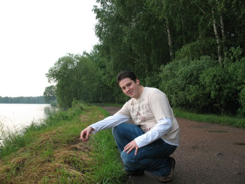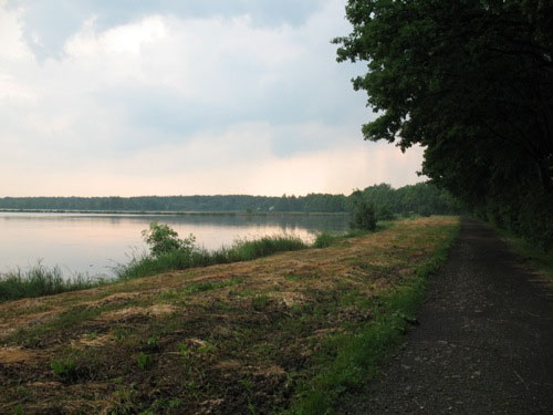 Podążając szlakiem przyrodniczym obeszliśmy wszystkie okoliczne stawy. Przedzierając się przez błotniste, leśne dróżki staraliśmy się zachować ciszę (w końcu zasad trzeba się trzymać). Oczywiście zasad tych ptactwo leśne się nie trzyma - w naszych uszach aż brzęczało od głośnych arii. Piękne uczucie - znależć się na chwilę tam, gdzie nie ma praktycznie nikogo. Po ponad półtoragodzinnym powolnym spacerku dotarliśmy do Zabrzegu (albo Zabrzega - jakkolwiek to się odmienia), skąd po wypiciu piwka wyszliśmy na zaporę nad jeziorem Goczałkowickim. To dopiero jest ogromny zbiornik wodny. Słońce już zachodziło... niestety za chmury unoszące się tuż nad linią horyzontu - gdyby nie to, bylibyśmy świadkami pięknego, różowego zachodu słońca. Droga powrotna nie była już taka ciekawa... szliśmy szosą, aż do stacji PKP w Goczałkowicach, skąd o 22:00 wyjechaliśmy do domku. To był wspaniały dzień i choć całkiem zdarliśmy sobie pięty - było warto - w końcu zobaczyliśmy jedne z najpiękniejszych terenów w obrębie Bielska-Białej.