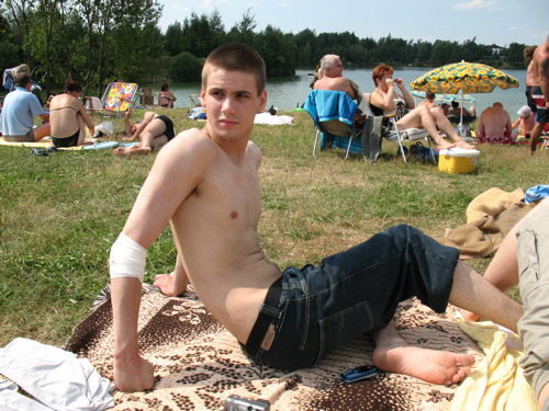 Kaniów okazał się niezwykle ładnym miejscem. Jeziorko wyglądało wspaniale, a woda była bardzo ciepła. Wzięliśmy ze sobą grilla, więc głodówki nie było. Nawet Michał dał się wyciągnąć na tą wycieczkę z domu. Na miejscu było całkiem sporo ludzi, którzy wylegiwali się na brzegu, co widać na poniższych zdjęciach - po prostu tłumy! Ale nie przeszkadzało to w tym aby wypocząć i wykąpać się. Wielkie dzięki dla Tomka i Karolinki za miłą wycieczkę!