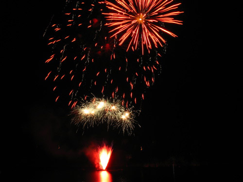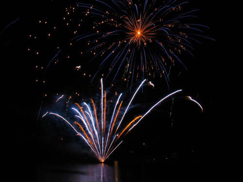 Tomek jak zawsze zaskoczył nas swoją pomysłowością i zabrał nas w miejsce w którym wcześniej nie byliśmy - do Kaniowa, ale w przeddzień zabrał nas także na pokaz fajerwerków w Międzybrodziu, co było niezapomnianym przeżyciem. Pokaz trwał dosyć długo i patrzyliśmy jak grube pieniądze (bo musiało to trochę kosztować organizatorów) dosłownie płonęły w powietrzu tworząc oszałamiające wzory. Po prostu bomba!